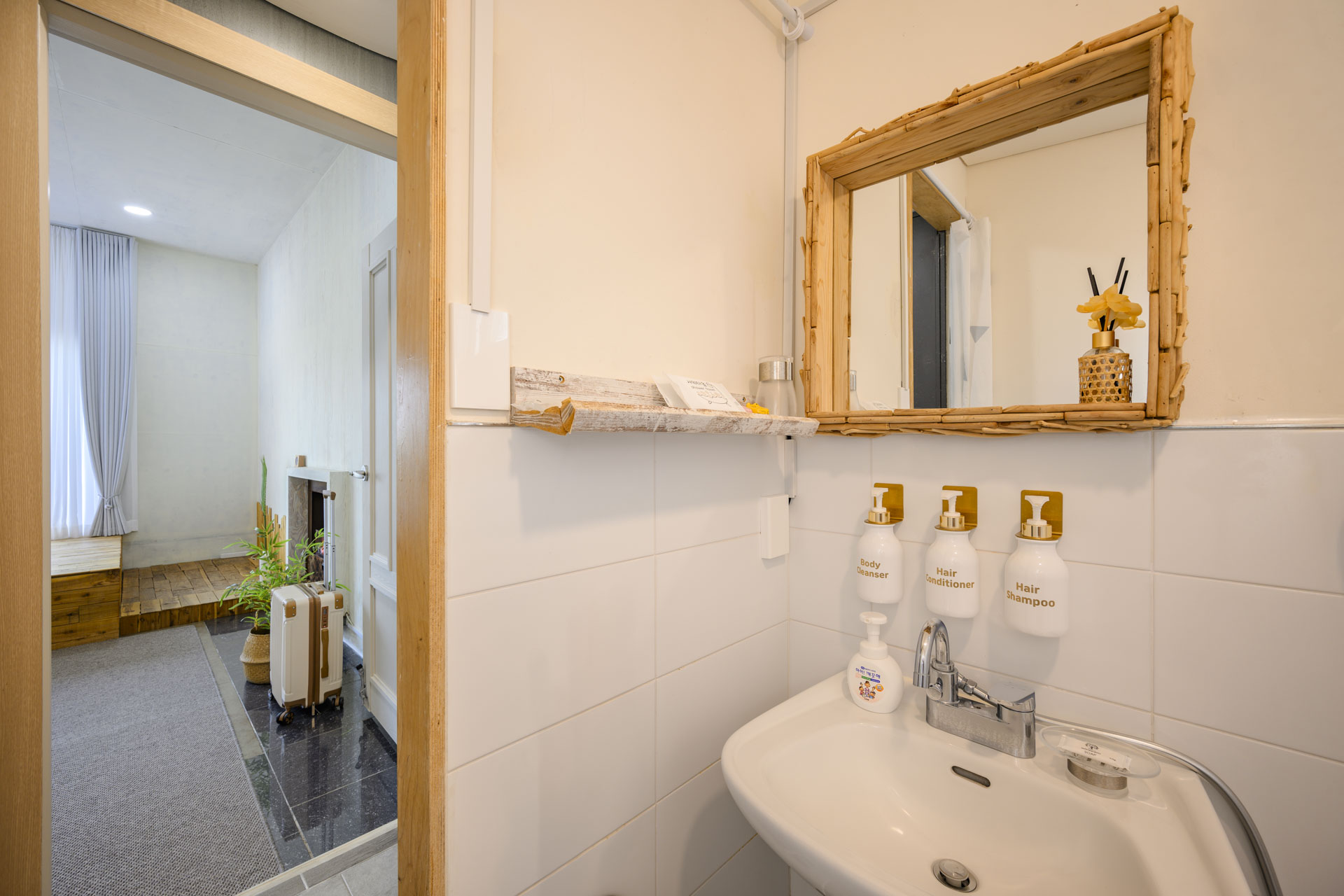 - 욕실용품 (샴푸, 린스, 바디워시, 비누, 칫솔, 치약, 샤워타올)